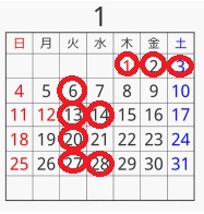 ※火曜日が基本となりますが、祝日やイベント等により変動しますのでご注意下