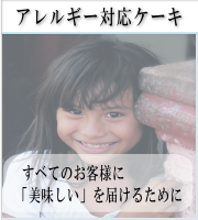 また、当店ではより多くの方にお召し上がり頂けるよう アレルギー対応のケーキ(卵抜き、卵乳製品抜き、小麦粉抜き) もお作りしております。 創業当時から変わらぬ製法で作り続けている「伝統のバームクーヘン」は 手焼きにこだわり、高度な職人の技と最高の素材でここでしか味わえない美味しさを皆様にお届けしていきます。